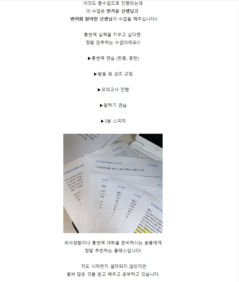 올해 3월부터 한중/중한으로 나누어 주2회 외사경찰 준비반 수업이 진행되고 있습니다