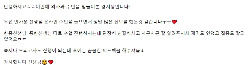 네이버까페에 오시면 학습자분들이 후기를 남겨주셨는데 일부를 캡쳐해서 올립니다